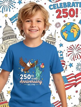 100% Algodón Niños Chico Azul Piscina Negro Blanco Graphic Águila 250 aniversario Camiseta Blusa Cuello Barco Manga Corta Exterior Uso Diario Moda Ropa de calle Design Estampado Verano