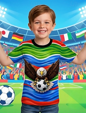 Chico 3D Graphic 250 aniversario Camiseta Manga Corta Impresión 3D Verano Primavera Deportes Moda Ropa de calle Niños 4-12 años Cuello Barco Casual Diario Exterior Ajuste regular