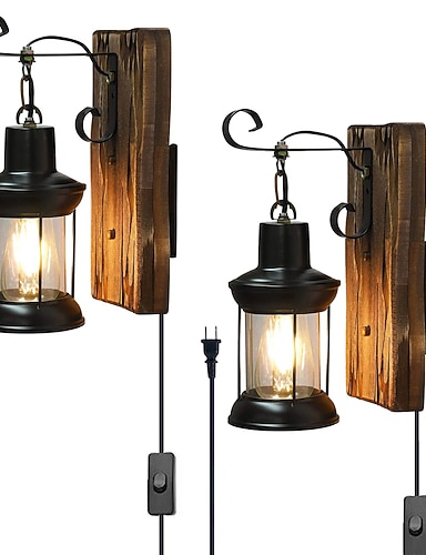 Lightinthebox lámpara de pared LED vintage retro madera metal pintura color lámpara de pared apliques iluminación con cable de enchufe de 6 pies e interruptor de encendido/apagado enchufe UE/EE. UU.