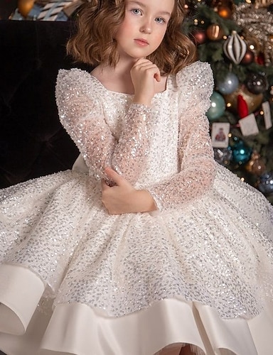 Niños Chica Vestido de Fiesta Color sólido Manga Larga Rendimiento Boda Fiesta Malla Princesa Dulce Malla Hasta el Gemelo Vestido tubo Vestido de Tul Verano Primavera Otoño Niños Blanco Champaña