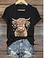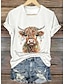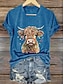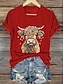 Navidad Mujer Camiseta Graphic Animal Vaca Vintage Elegante Clásico Manga Corta Escote en Pico Tops regulares Diario Estampado Azul Piscina Negro Blanco Rosa Rojo Verano Primavera Otoño Invierno