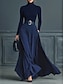 Mujer Vestido maxi Vestido tubo Cumpleaños Casual Formal Fiesta Oficina Diario Ajuste regular Plano Manga Larga Cuello Alto Azul marinero
