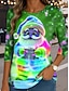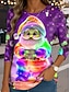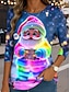 Navidad Mujer Camiseta Graphic Papá Noel Vintage Moda Elegante Manga Larga Cuello Barco Escote Redondo Tops regulares Diario Fin de semana Estampado Azul Piscina Morado Verde Trébol Verano Primavera