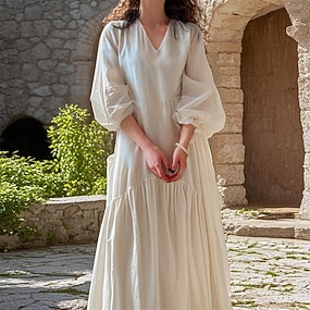 Medieval Renacimiento Hasta el Tobillo Vestidos Larga Monja Color sólido Corte A Disfraz Mujer Religioso Víspera de Todos los Santos Carnaval Mascarada Feria del Renacimiento LARP Fiesta temática