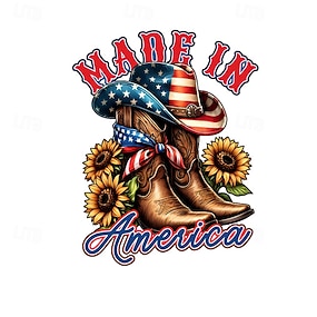 10 pegatinas patrióticas de Estados Unidos con diseño de botas de vaquero, sombrero y girasoles, vinilo impermeable para botellas de agua, portátiles, álbumes de recortes y decoraciones para fiestas