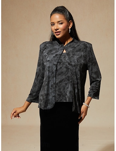 Mujer Blusa Tops elegantes Lentejuelas Bordado Pluma Elegante Manga 3/4 Collar mandarín Tops regulares Fiesta de Noche Invitado a la boda Vino Primavera Otoño Invierno