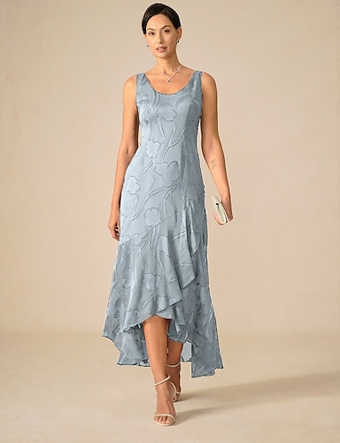 Mujer Vestido maxi Vestido de una línea Elegante Playa Fiesta de Noche Cita Lentejuelas Asimétrico Transparente Ajuste regular Pluma Sin Mangas Cuello Barco Azul polvoriento