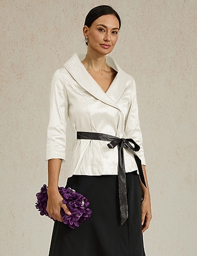 Mujer Blusa Tops de noche corbata frontal Elegante Metálico Moderno Manga 3/4 Escote en Pico Tops regulares Fiesta de Noche Invitado a la boda Semi-formal Rosa iluminada por el sol Primavera, Otoño