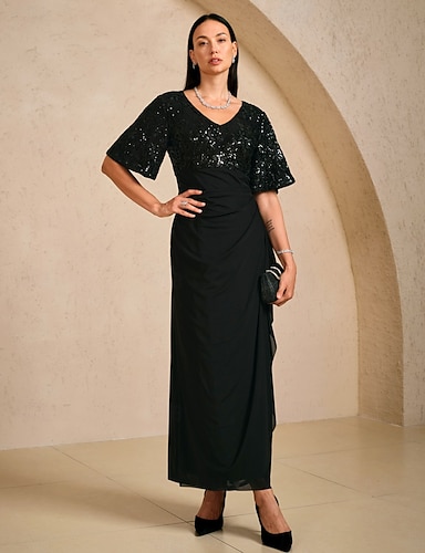 Mujer Vestido maxi Vestido de una línea vestidos cintura imperio Elegante Mangas anchas Invitado a la boda Fiesta de Cóctel Brillante Con Cuentas Brillantes Ajuste regular Color sólido Manga Corta