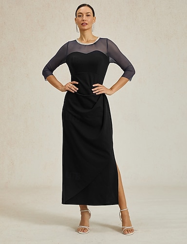 Mujer Vestido maxi Vestido tubo Elegante Fiesta Formal Color sólido Manga 3/4 Cuello Barco Azul Marino