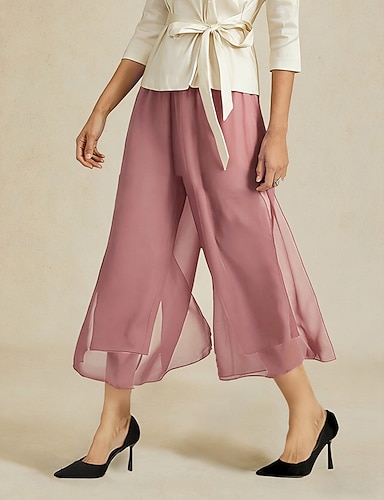 Mujer Perneras anchas Corte Recto Elegante Hasta el Tobillo Media cintura Cintura elástica Elástico Casual Diario Boda Blanco Verano Primavera Otoño