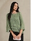Mujer Camisa de encaje Blusa Tops elegantes Tops de gasa Color sólido Elegante Básico Casual Manga 3/4 Campana Escote Barco Tops regulares Diario Trabajo Invitado a la boda Verde esquisto Verano