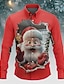 Navidad Hombre Papá Noel Cara humana navidad divertida Camisa Abotonar la camisa Manga Corta Gracioso Exterior Festivos Verano Primavera Cuello Vuelto Impresión 3D camisas con cuello Rojo 1 Rojo 4