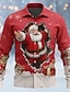 Navidad Hombre Papá Noel Dibujo 3D navidad divertida Camisa Abotonar la camisa Manga Larga Gracioso Regalos de Navidad Festivos Primavera Otoño Cuello Vuelto Impresión 3D camisas con cuello Rosa
