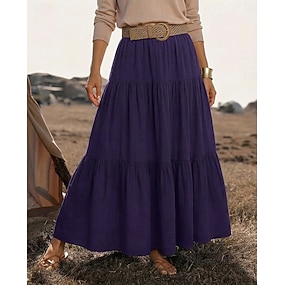 Mujer Falda de lino y algodón sintético Moda Casual Maxi Media cintura Faldas Color sólido Frunce Volante Rígido Diario Vacaciones Negro Vino Morado Marrón Verano Poliéster