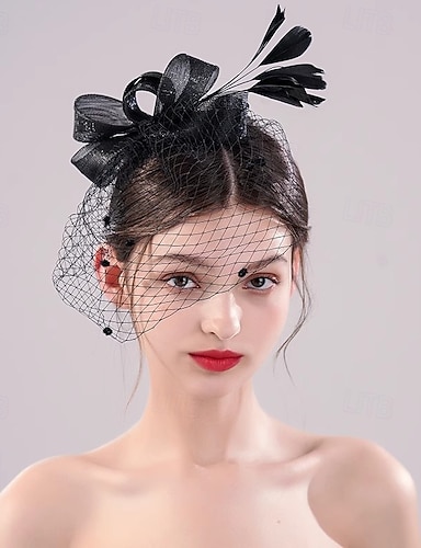 Vestimenta de Cabeza Pinza para el cabello Pluma Plumas Boda Cumpleaños Elegante Vintage Con Pluma Tul Celada Sombreros
