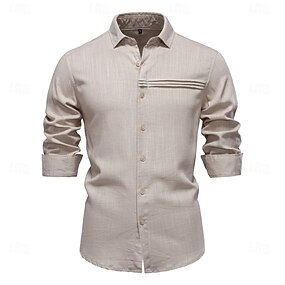 Hombre Camisa camisa de lino Camisa casual Abotonar la camisa Remera de algodón Plano Hawaiano Festivos Negro Verde Trébol Gris Manga Larga Cuello Vuelto Primavera & Otoño Ropa Bolsillo delantero