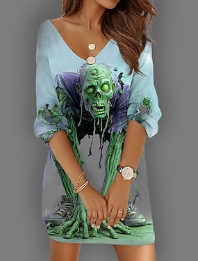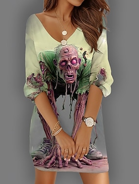 Camiseta para Mujer Gráfico de Calaveras Esqueleto Vintage Estilosa Clásica Manga Corta Cuello Redondo Tops Regulares Diario Fin De Semana Estampado Negro Otoño Invierno