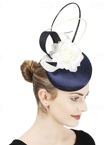 Fascinators Lino Boda Cumpleaños Elegante Vintage Con Flor Tul Celada Sombreros