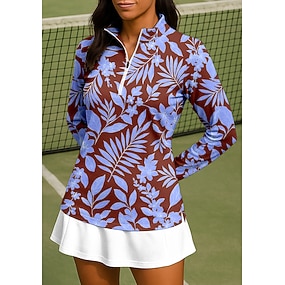 Mujer Flores Tops Camisas Camisa deportiva Camisas de polo Manga Larga Cremallera Floral UPF50+ Resistente a los rayos UV Alta elasticidad Dispersor de humedad Transpirable Voleibol Tenis Golf Cuello