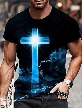 Camiseta de manga corta de la Biblia para hombres camiseta impresión 3D cuello redondo camiseta casual violeta profundo gris jaspeado negro ropa de verano vestimenta normal