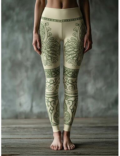 Mujer Polainas Loungewear Leggings cómodos Vacaciones Vintage Estilo Étnico Longitud total Alta cintura Graphic Árbol Estampado Cómodo Elástico Casual Diario Vacaciones Beige Primavera Otoño Ajustado