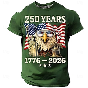 4 de julio de 2026 250 aniversario Día de los Caídos Camiseta de impresión 3D bandera estadounidense de hombre de cuello redondo de manga corta Diario Street