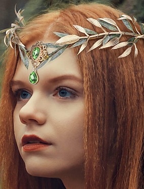 diadema de diamantes de imitación de hoja de hada - tocado de princesa elfo hecho a mano corona de flores de boda de bosque para mujeres niñas renacimiento halloween cosplay accesorios para el cabello