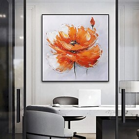 Pintura al óleo pintada a colgar Pintada a mano Cuadrado Floral / Botánico Moderno Sin marco interior (sin marco)