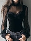 Mujer Blusa Tops de encaje Encaje Plano Elegante Básico Moderno Manga Larga Cuello Alto Tops regulares Diario Festivos Noche Negro Verano Primavera
