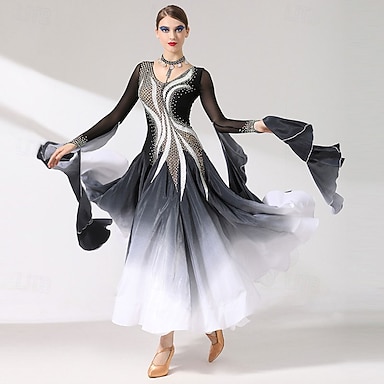 Baile de Salón Vestido Plisado Corte Cristales / diamantes de imitación Mujer Rendimiento Entrenamiento Manga Larga Cintura Alta Licra Gasa Seda Sintética