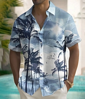 Hombre Árbol de coco Naturaleza y Paisajes Plantas tropicales camisa hawaiana Abotonar la camisa Manga Corta Hawaiano Vacaciones Verano Primavera Cuello Vuelto Impresión 3D camisas con cuello Un