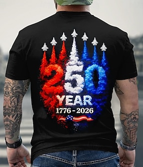 4 de julio de 2026 250º Día de los Caídos Camiseta de Cuello Redondo de Hombre Patriótica Impresión 3D Bandera de EE. UU. de Manga Corta Diaria Calle