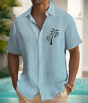 Hombre Árbol de coco Plantas tropicales Camisa de lino camisa hawaiana Abotonar la camisa Manga Corta Hawaiano Complejo Vacaciones Festivos Ropa de playa Verano Primavera Cuello Vuelto camisas con