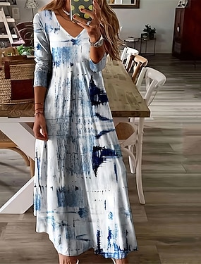 Mujer vestido largo vestido largo Vestido informal Vestido Estampado Moda Moderno Diario Playa Fin de semana Ajuste regular Graphic Manga 3/4 Escote en Pico Azul Piscina Negro Verde Trébol Primavera