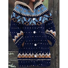 Mujer Pulóveres Cárdigan Elegante Moda Ropa de calle Graphic A Rayas Con Capucha Bolsillo De Punto Estampado Manga Larga Tops regulares Tejer Exterior Diario Fin de semana Azul Marino Azul Piscina