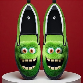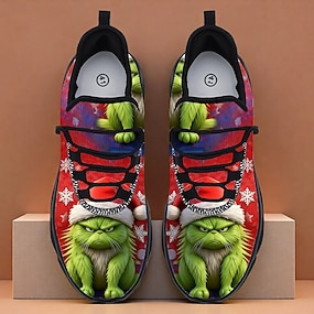 Zapatillas navideñas divertidas y feas para hombre, con diseño gráfico de personajes de dibujos animados en 3D y estampado vibrante para un calzado festivo y divertido durante las fiestas.