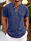 Hombre Henley Shirt Camiseta superior Mangas cortas Plano Moda Design Básico Escote en Pico Vacaciones Calle Noche Verano Azul marinero Negro Blanco Camiseta Henley