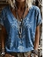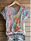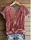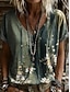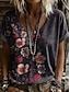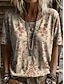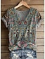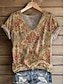 Mujer Camiseta Estampado Floral Graphic Plantas Vintage Elegante Casual Manga Corta Escote en Pico Tops regulares Diario Fin de semana Azul Piscina Beige Claro Negro Rojo Marrón claro Verano Primavera
