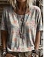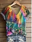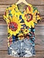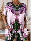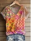 Mujer Camiseta Estampado Floral Graphic Plantas Vintage Elegante Clásico Manga Corta Escote en Pico Tops largos Diario Fin de semana Azul Piscina Amarillo Rosa Naranja Verano Primavera