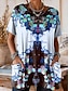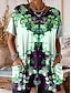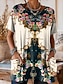 Mujer Camiseta Estampado Floral Graphic Geométrico Vintage Elegante Casual Manga Corta Cuello Barco Tops regulares Casual Diario Fin de semana Negro Rosa Azul polvoriento Marrón Verano Primavera
