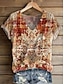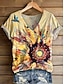 Mujer Camiseta Estampado Floral Graphic Plantas Vintage Elegante Casual Manga Corta Escote en Pico Tops regulares Casual Diario Fin de semana Azul Piscina Amarillo Rojo Marrón Verano Primavera