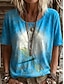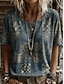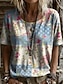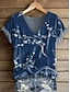 Mujer Camiseta Estampado Floral Graphic Plantas Vintage Elegante Casual Manga Corta Escote en Pico Tops regulares Casual Diario Fin de semana Azul Piscina Blanco / azul Beige Claro Beige Verano