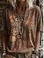 Camiseta Boho de Mujer de Manga Larga Gráfica Floral Plantas Vintage Estil Casual Cuello en V Tops Regulares Diarios Fin de Semana Impresión Verde Salvia Rosa Rojo Púrpura Verde Primavera Otoño