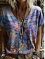 Mujer Camiseta Estampado Floral Graphic Plantas Vintage Elegante Clásico Manga Corta Escote en Pico Tops regulares Casual Diario Fin de semana Azul Piscina Morado Fucsia Verano Primavera