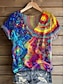 Mujer Camiseta Estampado Ombre Graphic Abstracto Vintage Elegante Clásico Manga Corta Cuello Barco Tops regulares Casual Diario Fin de semana Azul Piscina Amarillo Morado Verde Trébol Verano Primavera