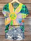 Mujer Camiseta Estampado Ombre Floral Graphic Vintage Elegante Clásico Manga Corta Escote en Pico Tops regulares Diario Fin de semana Azul Piscina Amarillo Verde Trébol Arco Iris Verano Primavera