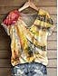 Mujer Camiseta Estampado Floral Graphic Plantas Vintage Elegante Casual Manga Corta Escote en Pico Tops regulares Diario Fin de semana Azul Piscina Amarillo Vino Morado Naranja Verano Primavera