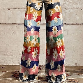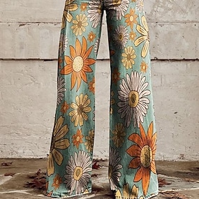Retro Antiguo Boho Años 70 Pantalones Pantalones de pierna ancha Hippie Disco Alta cintura Floral Margarita Estilo de jeans falsos Disfraz Mujer Carnaval Casual Diario Festival de Música Fiesta