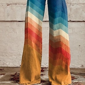 Retro Antiguo Boho Años 70 Pantalones Pantalones de pierna ancha Hippie Disco Alta cintura Impresión al óleo Estilo de jeans falsos Disfraz Mujer Carnaval Casual Diario Festival de Música Fiesta